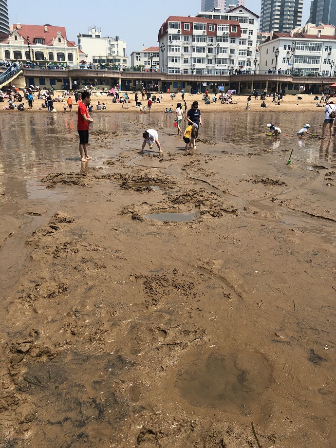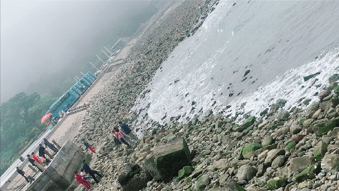我们一边走一边观赏风景,不知不觉的就到了海边,正好海水涨潮,冲上了许多小石头。小贝壳小虾……