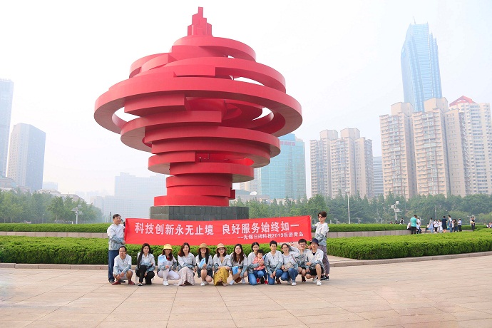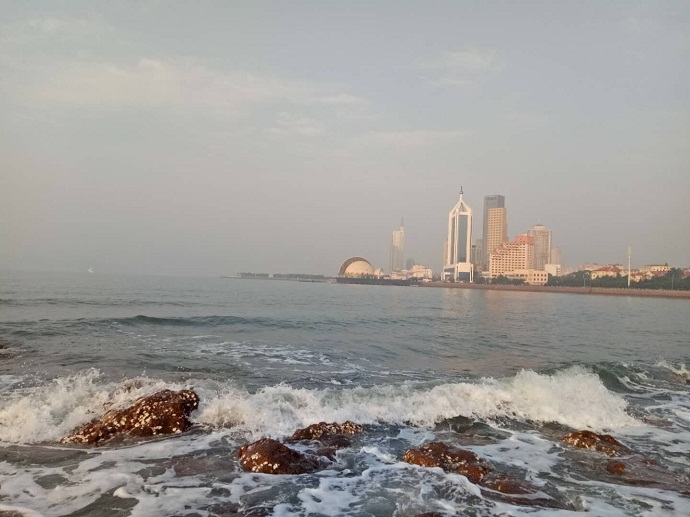目光转到五四广场,广场上人山人海,非常热闹,来来往往的人们形成了一个欢乐的海洋。“五四广场”中央有一个大“火炬”,好像一团燃烧着的“烈火”。名字叫做五月的风。这是青岛的标志,茹菓你看到了这个标志,就代表你已经来到青岛了。我们在那里照了几张照片,还走了一遍去年奥运会帆船比赛的地方——浮水湾。