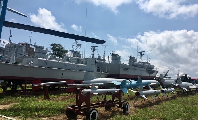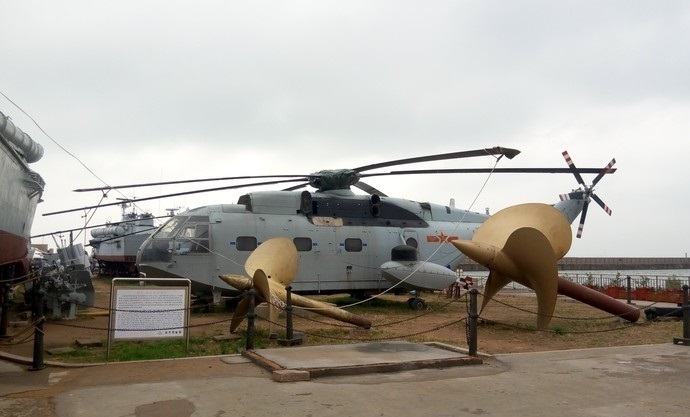 接下来就是海军博物馆。一进博物馆,就看见各式各样的战斗机整整齐齐的、一排排的排列着,从歼-3、歼-5、歼-8、以及轰炸机、武装直升飞机,还有鱼雷、深水炸弹、各种导弹、舰炮、高射炮等琳琅满目,让我们看得目不暇接、赞叹不已。